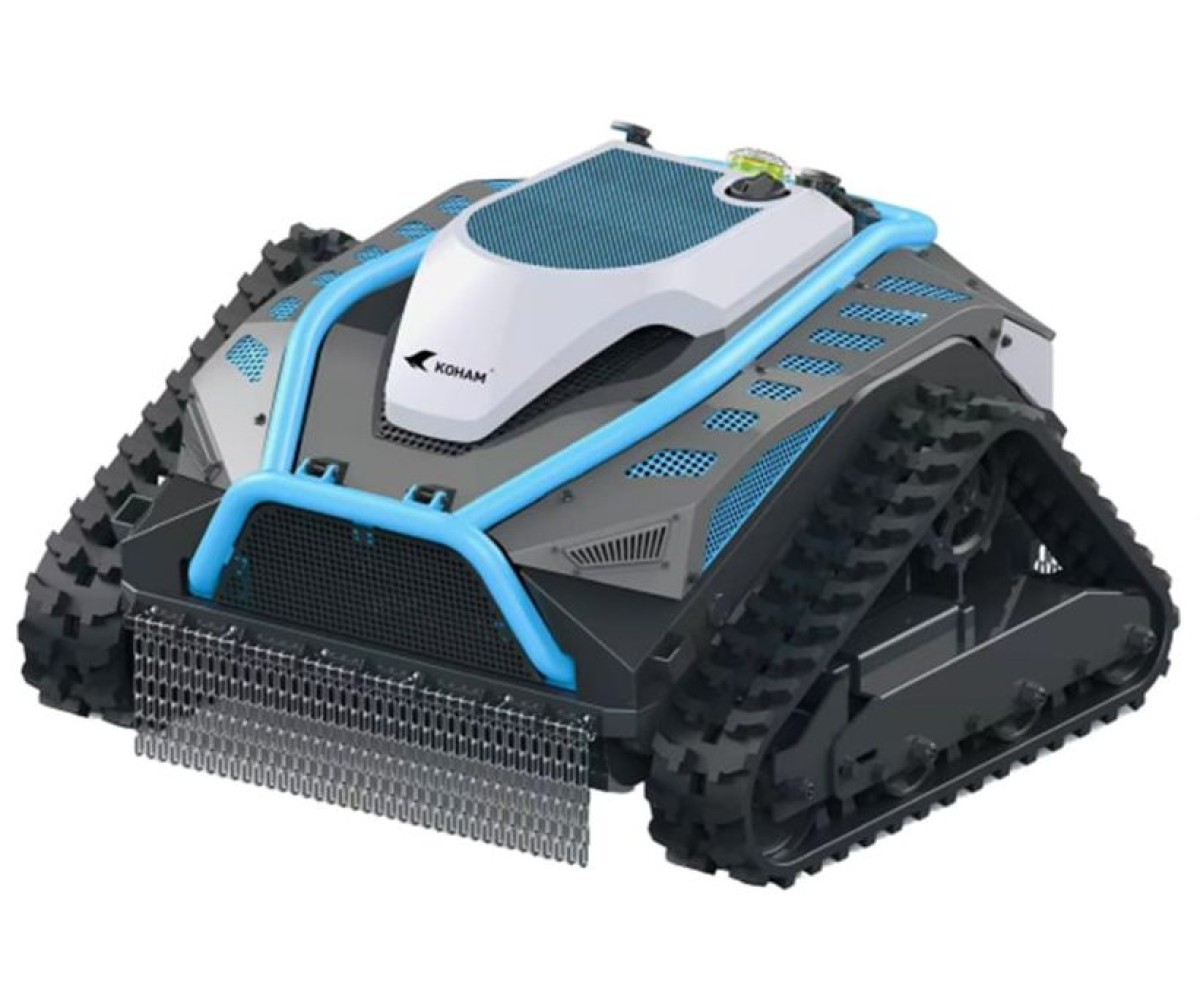 Робот косилка KOHAM KH-LM4827B KOHAM KH-LM4827B (ZimAni ГРОМ) - Профессиональная радиоуправляемая газонокосилка-мульчер на гусеничном ходу с двигателем Loncin - специализированная машина для эффективного скашивания высокой травы и мелких кустарников: вдоль автотрасс, железных дорог, парках, под линиями электропередач, трубопроводов, железнодорожных откосов, на крутых склонах и оврагах, возле плотин и дамб, на крутых берегах рек и т.п.