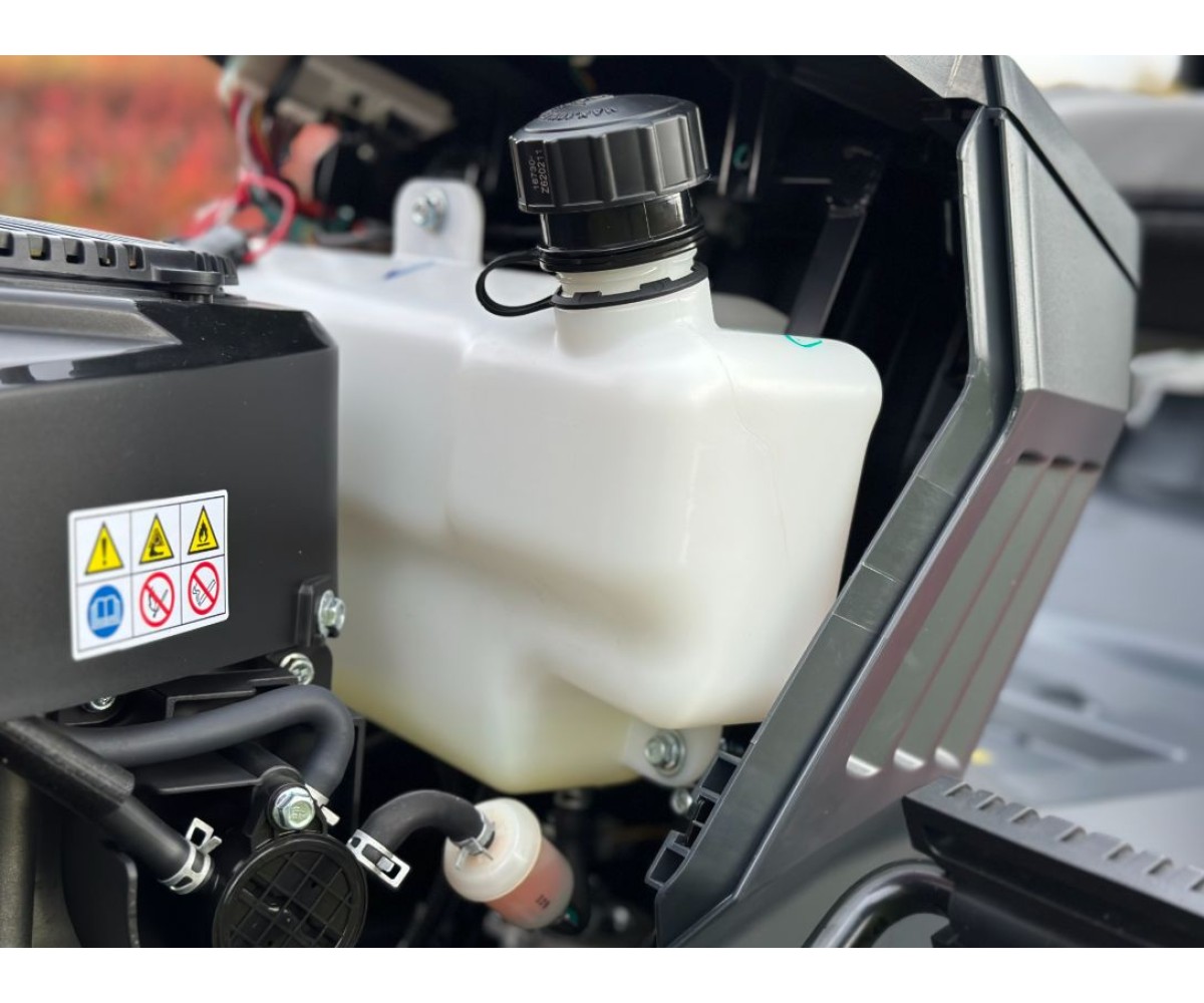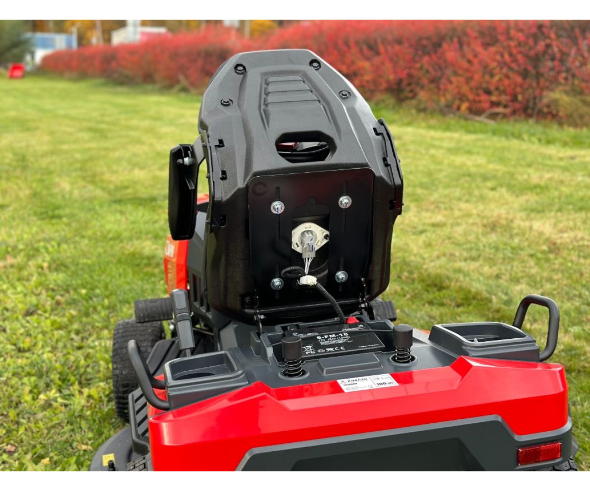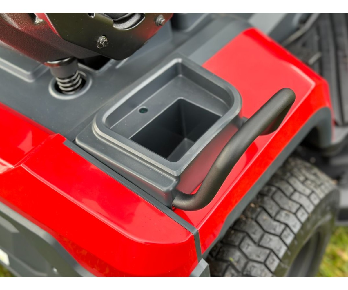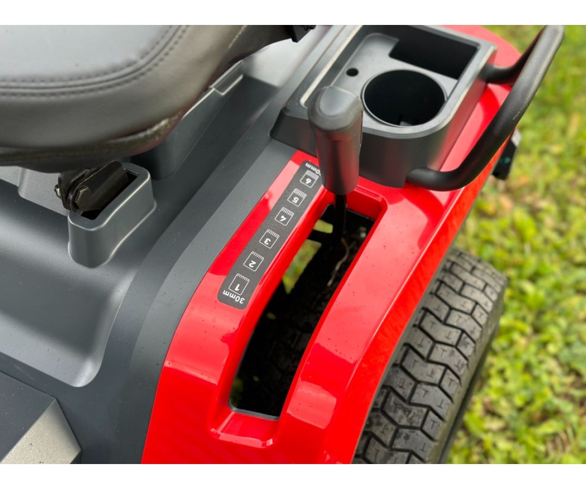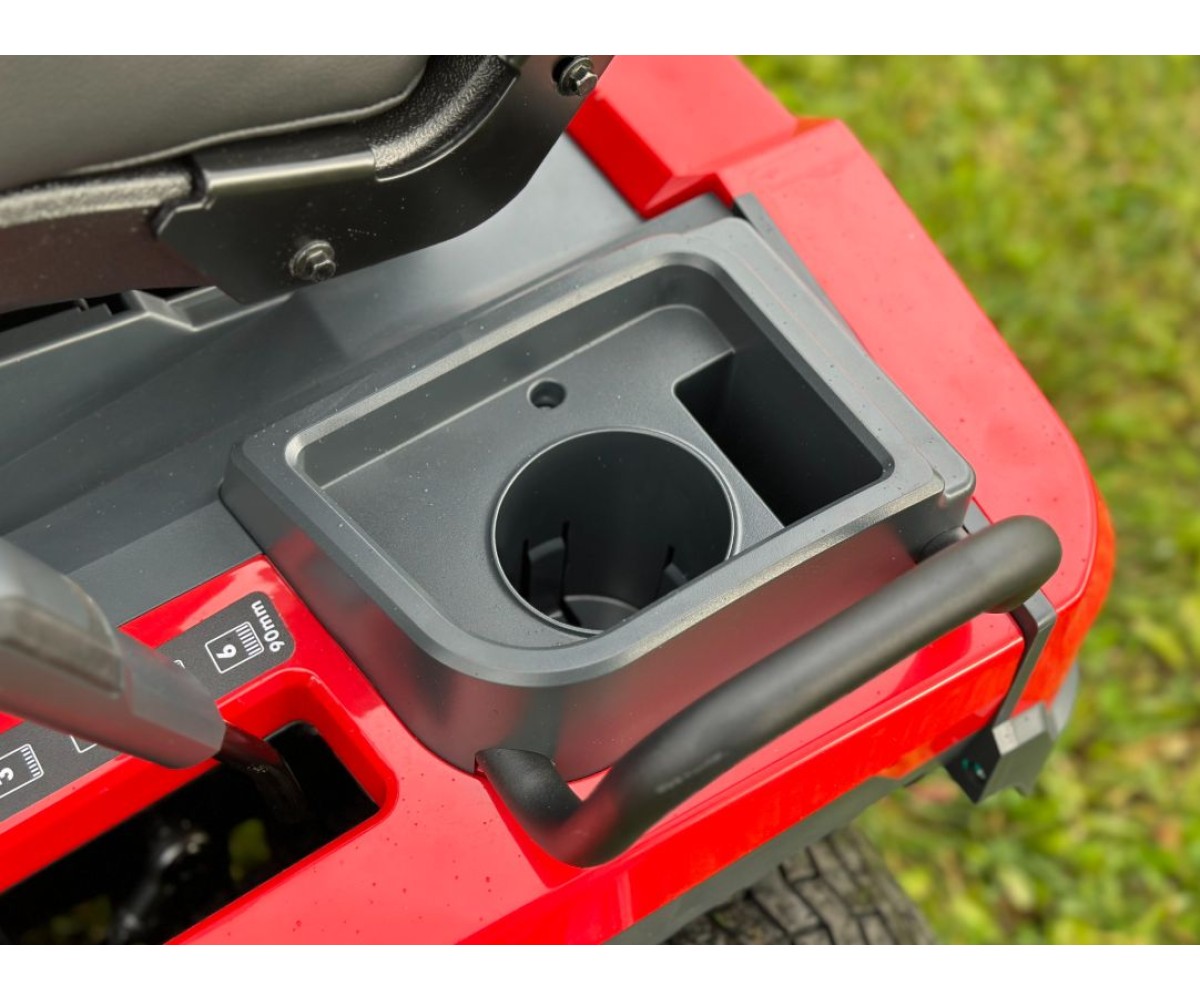 - Комфорт и безопасность оператора - автоматическое выключение двигателя при покидании оператором рабочего места, боковой отсек для хранения и подстаканник. Подпружиненная режущая дека облегчает регулировку. Оператор может отрегулировать продольное положение регулируемого сиденья. Электромеханическая муфта включения режущего ножа удобно расположена на панели управления. Эргономичное рулевое колесо установлено под углом, обеспечивая более комфортное рабочее положение.