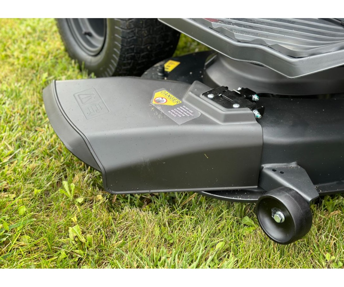 - Плавающая режущая дека имеет 2 антискальпирующих колеса, предотвращающие повреждение дерна.