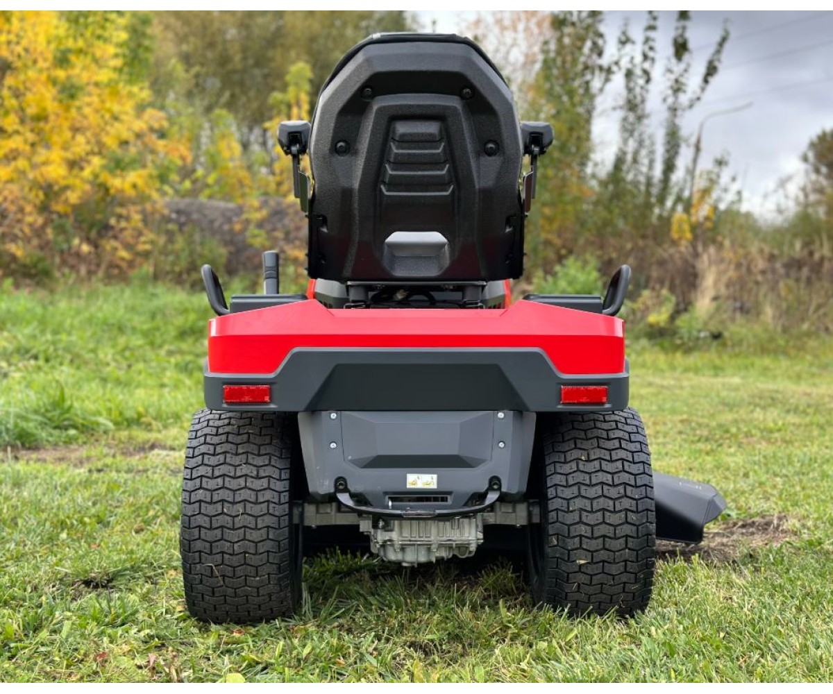 Профессиональный садовый трактор с 2-х цилиндровым, бензиновым двигателем, мощностью 18 л.с. и шириной скашивания 108 см. имеет гидростатическую трансмиссию. Профессиональная трансмиссия дает возможность не только легко управлять машиной (без постоянного переключения передач), но и решать трудные задачи (например, работать на сложных по ландшафту участках). Помимо кошения травы садовый трактор способен выполнять различного рода операции по уходу за газоном, такие как опрыскивание, аэрация, скарификация, укатка газона, транспортировка, разбрасывание удобрений и семян, сбор мусора различными видами щеток и т.д. Существует возможность установки зимнего навесного оборудования.