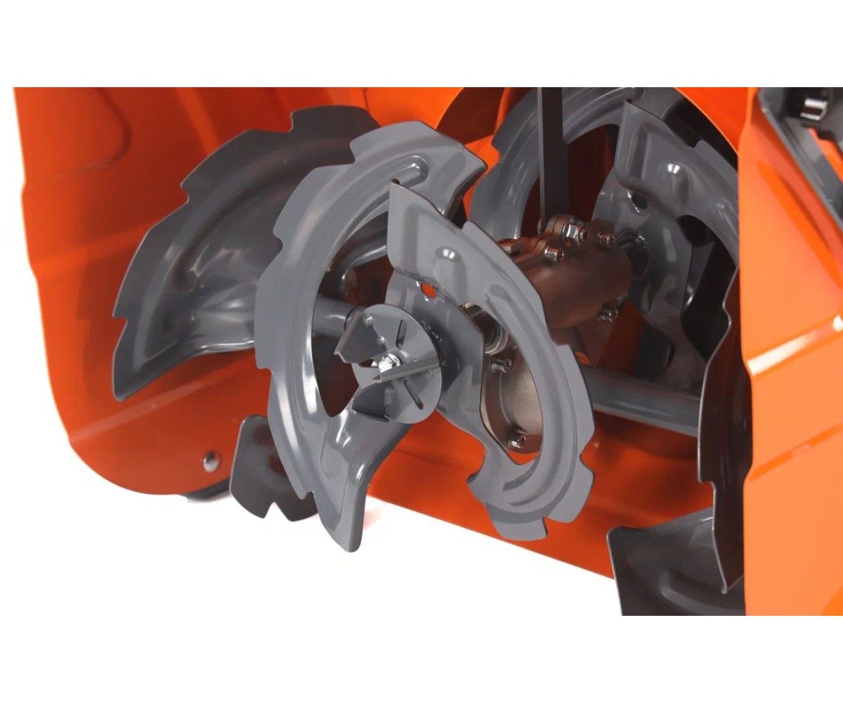Прочный стальной шнек легко вгрызается в снег, а мощный воздушный поток отбрасывает его на расстояние до 14 метров через цельнометаллическую трубу.